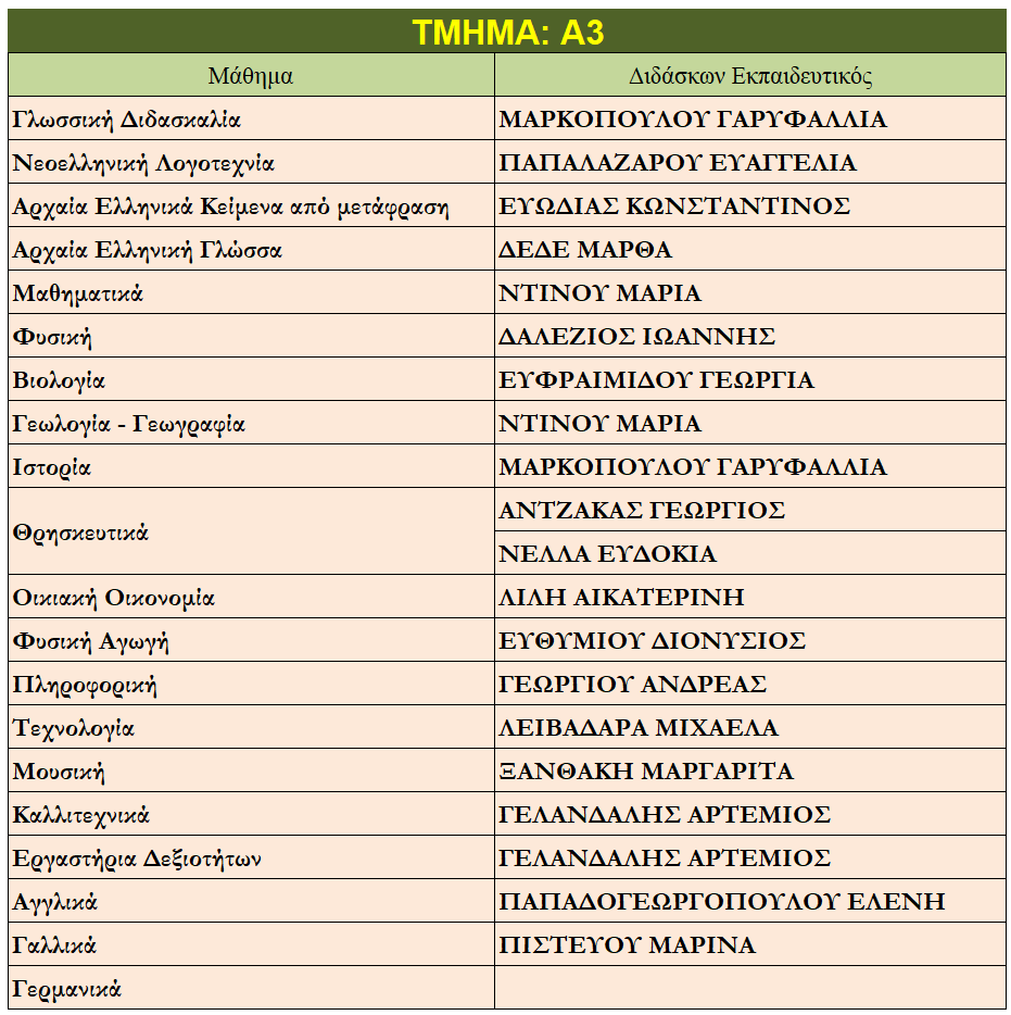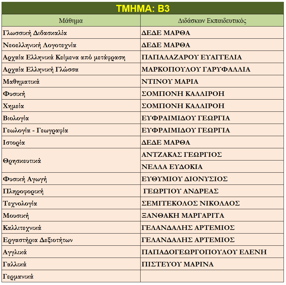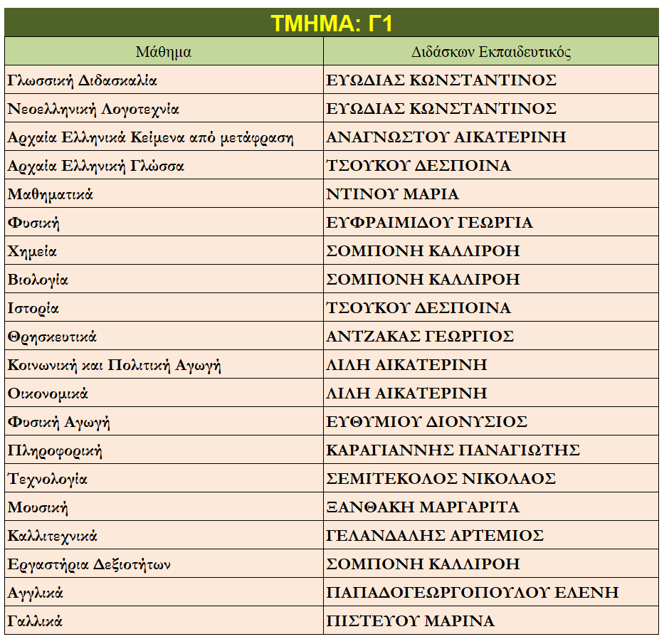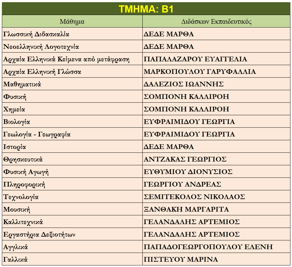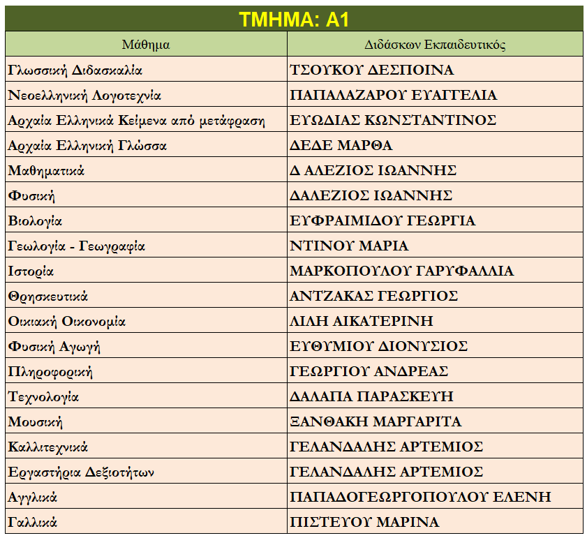 Ποιοι καθηγητές κάνουν μάθημα στο παιδί μου;