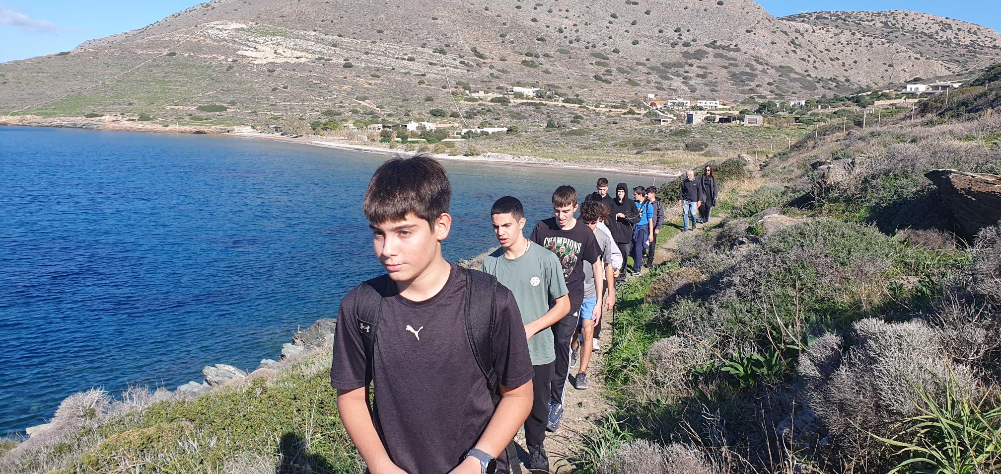 Η δράση ξεκίνησε από την παραλία του Κινίου, όπου οι μαθητές συζήτησαν για την έννοια του «άγριου» σε σχέση με το φυσικό περιβάλλον, τα φυτά και τα ζώα. Στη συνέχεια, ενημερώθηκαν για τους βασικούς κανόνες ασφάλειας και ορθής συμπεριφοράς κατά την πεζοπορία στο βουνό. Ακολούθησε οργανωμένη πεζοπορία προς το Δελφίνι με παράλληλη δραστηριότητααναζήτησης και παρατήρησης. Μετά την άφιξη στην παραλία οι μαθητές, αξιοποιώντας την πρότερη γνώση τους στη χρήση πυξίδας, συμμετείχαν σε δραστηριότητα προσανατολισμού με δοκιμασίες και γρίφους μέσα από την οποία άντλησαν πληροφορίες για τις ποσειδωνίες, τις ξερολιθιές και τη Γυάρο.