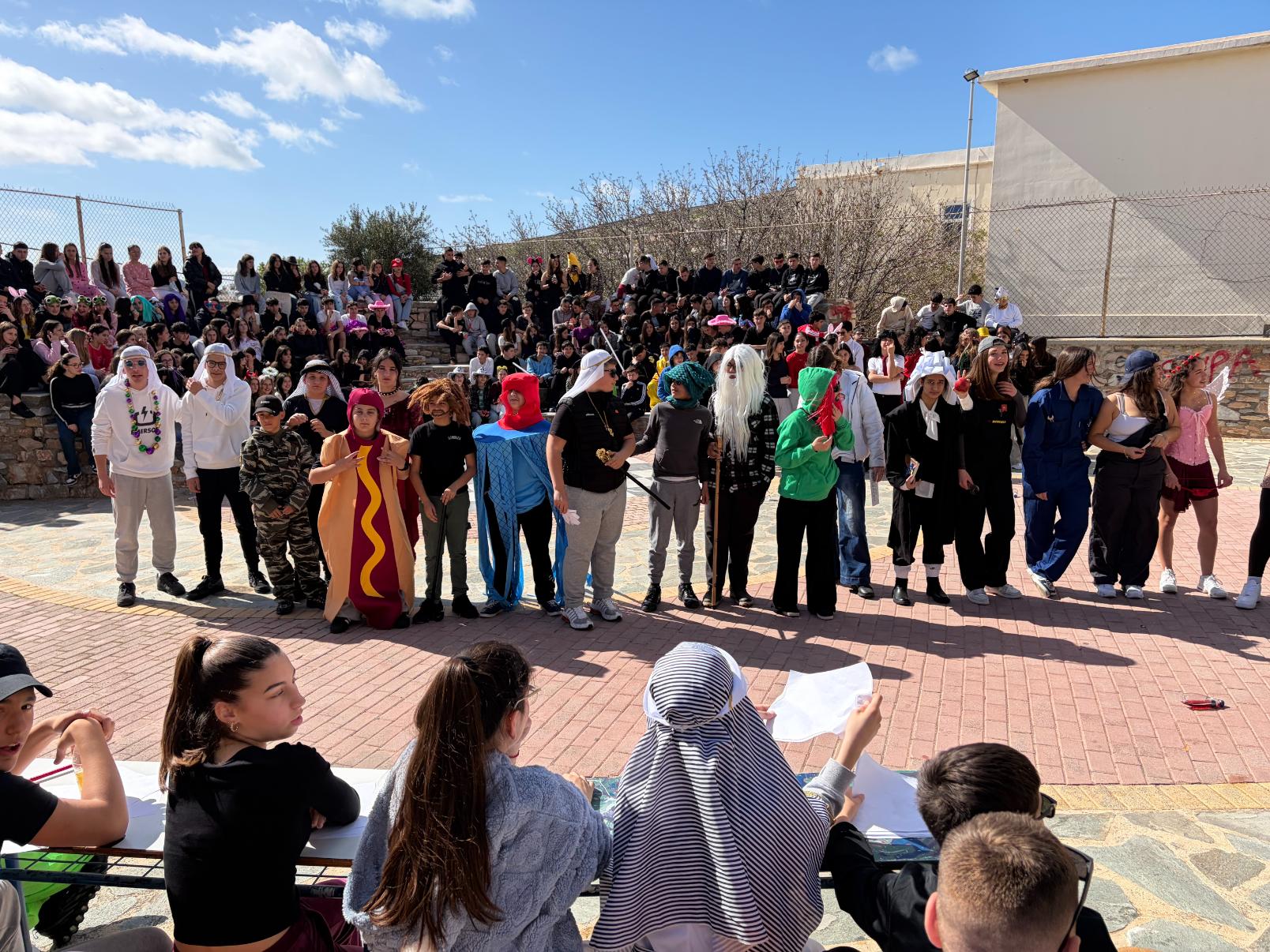 Δράση σύσφιξης των σχέσεων μεταξύ του σχολείου μας και του 1ου Γυμνασίου Σύρου (Πειραματικό) με αφορμή το καρναβάλι, κατά την οποία πραγματοποιήθηκε διαγωνισμός στολής.